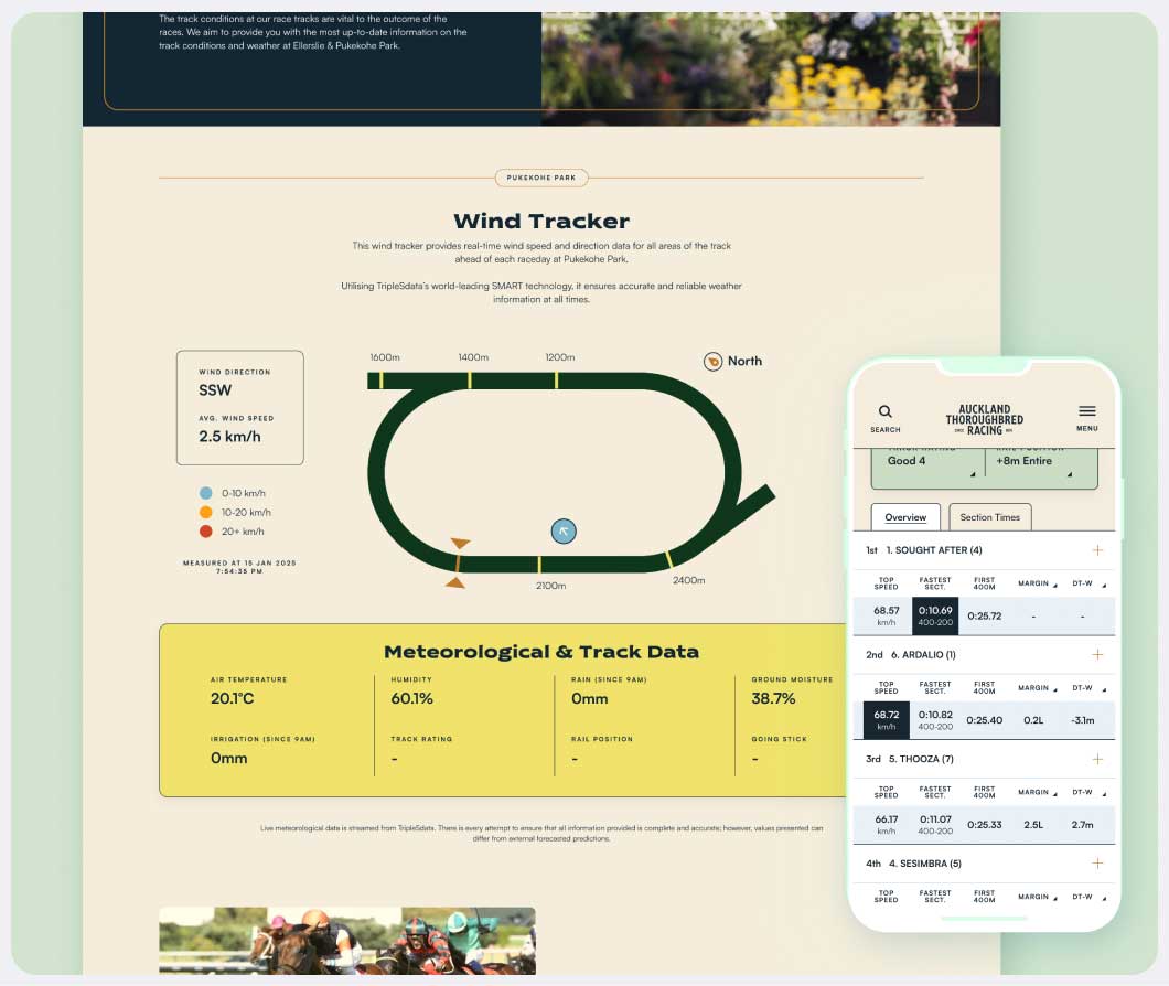 A dynamic live weather module enhances the experience, ensuring racegoers have all the information they need at their fingertips. By combining technical depth with an intuitive UI, we made complex data accessible to both seasoned punters and casual attendees.