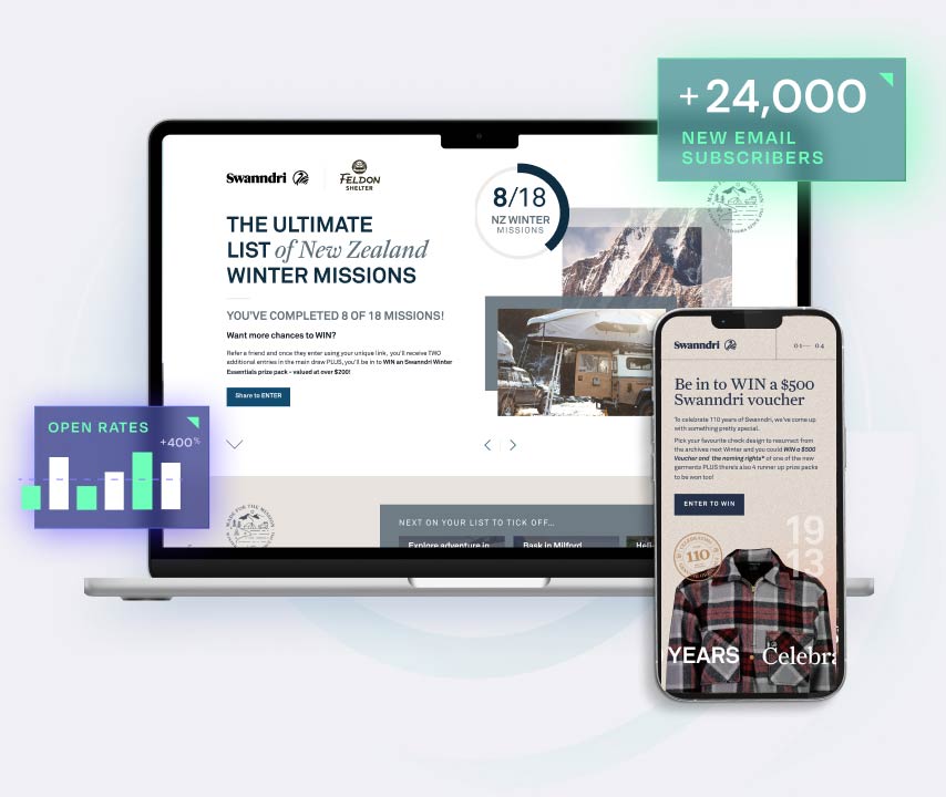 Finally, we designed and executed tailored lead generation campaigns to rapidly grow their subscriber database and capture valuable first-party data. This not only delivered strong results in the short term, but also empowered Swanndri to deepen personalisation and cross-channel integration across future campaigns.